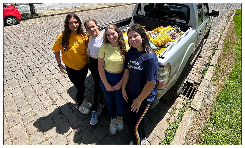 Ao todo foram arrecadados mais de 130kg de ração pelas 3 equipes participantes da Gincana e entregues na manhã do dia 21/02 a representante da ONG, Gisele Maganine.